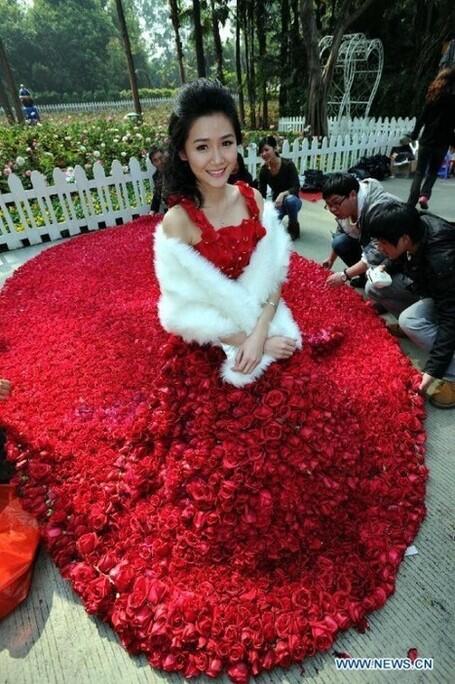 Um chinês pediu sua namorada em casamento com vestido feito c/ 9.999 rosas. O número 9 na China significa longevidade